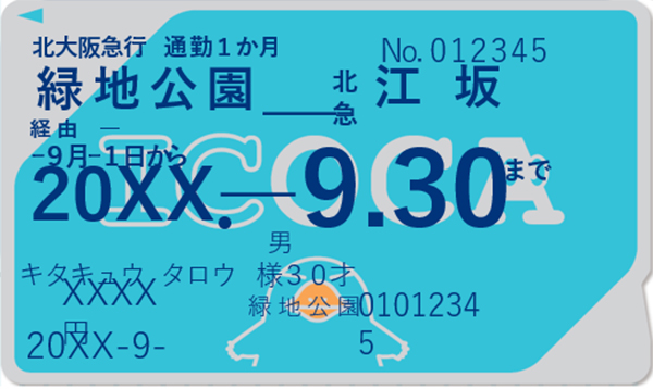 | 発売区間 | 北大阪急行 全線(江坂駅を除く)〜Osaka Metro 全線の乗車区間 | 北大阪急行 全線(千里中央駅を除く)〜大阪モノレール 全線の乗車区間 |